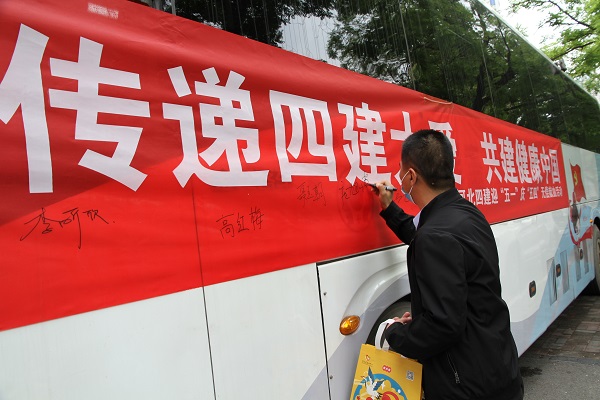 4月28日下午2點(diǎn),在公司門(mén)口,一輛懸掛有“傳遞四建大愛(ài)、共建健康中國(guó)”紅色條幅的白色獻(xiàn)血車(chē),和門(mén)口正上方的“河北四建”四個(gè)紅色大字相互映襯,顯得格外醒目;一條由四建職工組成的隊(duì)伍“長(zhǎng)龍”,正在徐徐向前移動(dòng)著。此時(shí),由公司黨委宣傳部和團(tuán)委聯(lián)合組織的以“傳遞四建大愛(ài)、共建健康中國(guó)”為主題的迎“五一”慶“五四”無(wú)償獻(xiàn)血活動(dòng),正在有條不紊進(jìn)行中。公司機(jī)關(guān)以及附近片區(qū)的各單位職工共計(jì)48人參與。