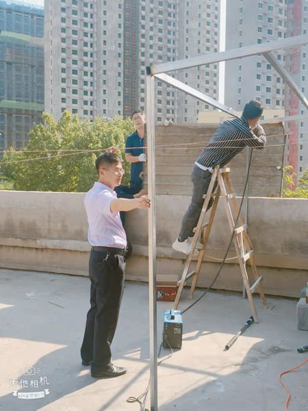 說干就干,立即行動(dòng)。劉保國(guó)和左建華對(duì)樓頂平臺(tái)實(shí)地量測(cè),記錄好尺寸。兩人一邊量著,一邊比劃著,對(duì)所需的材料做到心中有數(shù)。“采購材料的事兒,就交給我了?!痹O(shè)備材料科科長(zhǎng)史永濤拿出電話就開始聯(lián)系起來。材料就位后,考慮到有些電焊的活兒需要專業(yè)的工人,劉保國(guó)趕緊聯(lián)系了一名電焊工。大家分工合作,你遞材料、我扶鋼管,你安裝、我綁線,邊干邊聊。30多度的高溫下,大家的額頭上直冒汗,但干勁兒絲毫沒減。防雨棚安裝完畢,新買的洗衣機(jī)放置到位,大家松了一口氣?!敖裉斓拇蠊こ探Y(jié)束了,趁著這次機(jī)會(huì),咱們把宿舍的門窗都檢查一遍?!眲⒈?guó)說道,抬手擦了擦汗水,便拿起工具向宿舍走去。大家對(duì)宿舍的門窗逐一進(jìn)行檢查,對(duì)破洞的紗窗進(jìn)行了更換,對(duì)門上松動(dòng)的把手進(jìn)行了維修。