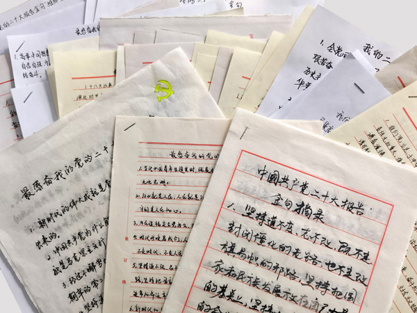 為進(jìn)一步加深黨員職工對(duì)黨的二十大報(bào)告的學(xué)習(xí)理解,推進(jìn)黨的二十大精神進(jìn)頭腦、進(jìn)思想,2022年11月26日至12月10日,公司黨委組織開展“最感奮我的黨的二十大報(bào)告金句”推薦活動(dòng)。 通知一經(jīng)下發(fā),雖處疫情居家辦公期間,但大家的積極性絲毫不受影響。公司領(lǐng)導(dǎo)班子成員率先垂范,結(jié)合參加國(guó)務(wù)院國(guó)資委培訓(xùn)中心學(xué)習(xí)貫徹黨的二十大精神網(wǎng)絡(luò)培訓(xùn)班學(xué)習(xí)收獲,原原本本學(xué)習(xí)黨的二十大報(bào)告原文,共推薦金句112條。黨員職工認(rèn)真學(xué)習(xí)黨的二十大報(bào)告,深刻理解報(bào)告中的新論斷、新要求、新部署,懷著崇敬的心情,一字一句工整地抄寫著金句,并表示,作為國(guó)企職工,要深入學(xué)習(xí)貫徹黨的二十大精神,立足本職、積極工作。十分公司王帥表示,通過(guò)摘抄黨的二十大報(bào)告金句,又是一次原原本本學(xué)習(xí),通過(guò)抄寫,對(duì)報(bào)告內(nèi)容又有新理解、新收獲,中國(guó)共產(chǎn)黨為人民謀幸福,從來(lái)都是動(dòng)真情、出實(shí)招、辦實(shí)事?!白鳛橐幻h員,要當(dāng)好干事先鋒員,以?shī)^發(fā)有為的姿態(tài)抓工作落實(shí)。對(duì)照黨的二十大的法治要求,響應(yīng)黨的二十大的號(hào)召,我們要做社會(huì)主義法治的自覺遵守者、堅(jiān)定捍衛(wèi)者。”六分公司劉生說(shuō)。五分公司丁江霞更是在認(rèn)真抄寫黨的二十大報(bào)告原文的同時(shí),把自己朗誦的黨的二十大報(bào)告金句錄制下來(lái),發(fā)送到自己的社交平臺(tái),讓更多的人投身到黨的二十大報(bào)告學(xué)習(xí)中來(lái)。 本次活動(dòng),每名黨員職工分段分條推薦并把黨的二十大報(bào)告中讓自己最受感動(dòng)、最受啟迪、最受鼓舞、最受激勵(lì)的原文,用筆抄寫到紙上,每人最少10條,不設(shè)上限。用腦思考、用手抄,手腦并用,學(xué)習(xí)更高效。經(jīng)統(tǒng)計(jì),共計(jì)523名黨員職工參與,累計(jì)推薦金句5530條,最終公司黨委擇優(yōu)評(píng)選出19個(gè)作品給予表彰獎(jiǎng)勵(lì)。(黨委宣傳部)