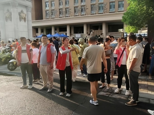 動(dòng)態(tài)響應(yīng)服務(wù),溫暖考場周邊。8日上午,當(dāng)一位老大爺騎著一輛載有文具的三輪車在校門口準(zhǔn)備打開手持喇叭時(shí),負(fù)責(zé)入口引導(dǎo)的志愿者立即上前,輕聲勸說其暫時(shí)關(guān)閉喇叭,并引導(dǎo)其停靠在指定區(qū)域。9日下午,突降陣雨,一位騎車人突然在校門口滑倒,正在執(zhí)勤的2名分公司志愿者迅速過去查看,詳細(xì)詢問駕駛?cè)藗?,小心將其扶起,并陪同至志愿服?wù)亭進(jìn)行簡單處理,同時(shí)將占道的電動(dòng)車推到便道上,保障道路暢通。這些暖心瞬間,讓家長們倍感安心,也充分展現(xiàn)了志愿者們的責(zé)任與擔(dān)當(dāng)。