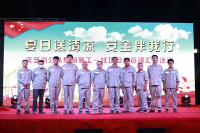9月7日晚,由河北省直屬機關(guān)工會工作委員會主辦的“夏日送清涼,安全伴我行”慰問施工一線職工專場演出在八分公司武安項目部舉行,項目部全體職工與作業(yè)工人共計二百余人共同觀看了演出。