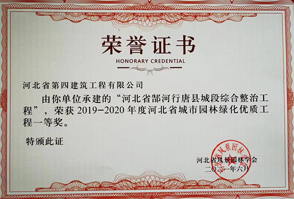 10月19日至20日,由河北省風(fēng)景園林學(xué)會(huì)主辦的第四屆六次常務(wù)理事會(huì)、四次理事會(huì)暨2020年年會(huì)在唐山召開(kāi)。會(huì)上,由八分公司承建的“河北省郜河行唐縣城段綜合整治工程”,被評(píng)為2019-2020年度河北省城市園林綠化優(yōu)質(zhì)工程一等獎(jiǎng)。這是繼榮獲石家莊市興石杯(市優(yōu))工程獎(jiǎng)之后,該項(xiàng)目獲得的又一獎(jiǎng)項(xiàng),為公司工程榮譽(yù)墻再添一抹色彩。