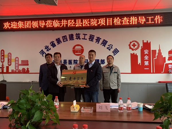 10月27日,集團(tuán)黨委副書(shū)記張慶虎、黨委組織部部長(zhǎng)張秋英、黨委組織部劉飛等一行三人到省四建二分公司井陘縣醫(yī)院項(xiàng)目黨支部進(jìn)行黨建示范點(diǎn)驗(yàn)收授牌。公司黨委副書(shū)記、紀(jì)委書(shū)記、工會(huì)主席李懷生,黨委組織部部長(zhǎng)王彥森,分公司黨總支書(shū)記孫立鋒一同參加。