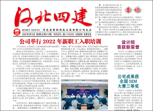 公司黨委立足講好四建故事,傳播四建美譽(yù),發(fā)力宣傳平臺(tái)建設(shè),做亮業(yè)績(jī)宣傳、做好典型宣傳、做強(qiáng)形象宣傳,發(fā)揮了最大宣傳效能。2022年1-11月份,出版《河北四建》11期,公司網(wǎng)站發(fā)稿比去年同期增加166 %;微信公眾號(hào)發(fā)稿期數(shù)和條數(shù),比去年同期增加28%和20%;抖音號(hào)發(fā)布視頻數(shù)比去年同期增加137.5%。8月份,公司3個(gè)平臺(tái)在中施企協(xié)組織的2022年工程建設(shè)企業(yè)文化作品競(jìng)賽中均獲獎(jiǎng),其中《河北四建》獲得報(bào)紙類優(yōu)秀獎(jiǎng)、公司網(wǎng)站獲網(wǎng)站類優(yōu)秀獎(jiǎng)、公司微信公眾號(hào)獲公眾號(hào)類優(yōu)秀獎(jiǎng)。(黨委宣傳部)