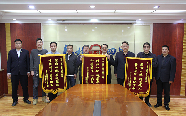 4月27日下午,石家莊市職教園區(qū)業(yè)主、甲方及監(jiān)理代表專程來到公司贈送錦旗,由衷感謝公司優(yōu)質(zhì)高效完成施工任務(wù)。公司黨委書記、董事長董富強,總經(jīng)理唐志強、副總經(jīng)理劉金河、九分公司經(jīng)理劉喜良等一同接待。