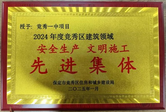 2025年1月14日,在保定市競秀區(qū)住房和城鄉(xiāng)建設局舉辦的2024年度總結表彰大會上,六分公司競秀一中項目部被授予“安全生產(chǎn)文明施工先進集體”榮譽稱號。