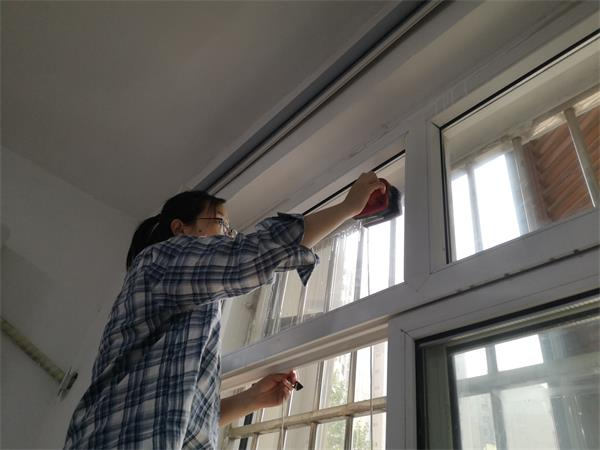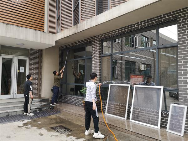 本次活動主要針對設(shè)計院的公共衛(wèi)生區(qū)域。先是擦玻璃,職工孟榮榮說:“用報紙擦吧,以前都用報紙擦,擦得很干凈?!薄澳嵌际抢宵S歷了,現(xiàn)在都用擦玻璃神器啦,我早準(zhǔn)備好了?!壁w蓓說。只見趙蓓拿出自帶了“刮水”功能的擦玻璃神器,沾上洗潔精水,吸附到玻璃窗上,不一會兒就把玻璃擦得干干凈凈。一樓設(shè)計室的外窗高,綜合辦準(zhǔn)備了加長桿的玻璃刮子,司南帶領(lǐng)幾名青年職工認(rèn)真擦拭,使窗戶變得潔凈透亮。接下來打掃辦公區(qū)域,職工們不放過一個盲區(qū)、不落下一個角落。大家對辦公室、樓道、衛(wèi)生間的衛(wèi)生死角進(jìn)行清掃、噴灑消毒;對打印機(jī)、飲水機(jī)、儲物柜等公用設(shè)備進(jìn)行擦拭消毒;對門把手、沖水按鈕、水龍頭開關(guān)等擦拭消毒。室內(nèi)清理完后清理小花園,大家拿著掃把、鏟子等工具,清掃拔除雜草,撿拾花池的雜物,清理衛(wèi)生死角,經(jīng)過兩個小時的勞動,辦公環(huán)境內(nèi)外煥然一新。