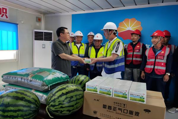 因近日持續(xù)高溫,現(xiàn)場的施工環(huán)境給堅守一線的施工人員帶來了嚴峻“烤”驗,也時刻牽動著分公司領(lǐng)導的心。6月12日,分公司黨支部書記、工會主席臧聯(lián)合到項目部詳細了解一線人員工作和生活情況,檢查消防和防暑降溫工作,為大家發(fā)放了西瓜、綠豆、藿香正氣口服液等防暑物品,為高溫下堅守崗位的項目職工帶來了“娘家人”的問候和關(guān)懷,并叮囑大家要在保障自身安全前提下完成好項目工作。