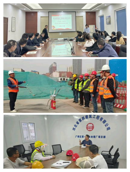 排查隱患,防患于未然。五分公司組織機(jī)關(guān)與項目部進(jìn)行了全面深入的火災(zāi)隱患大排查。機(jī)關(guān)重點(diǎn)針對辦公室、電動車棚、食堂和職工宿舍等區(qū)域展開細(xì)致排查,并及時整改發(fā)現(xiàn)的隱患。11月12日,廣陽項目部組織全體施工人員開展學(xué)習(xí)與消防演練活動,特別針對塔司、電梯司機(jī)、信號工等特殊工種作業(yè)人員進(jìn)行了有針對性的培訓(xùn),結(jié)合施工現(xiàn)場實(shí)際情況詳細(xì)解讀消防法規(guī)的核心要點(diǎn),深入剖析因電氣故障、明火使用不當(dāng)?shù)纫l(fā)火災(zāi)的典型案例,著重強(qiáng)調(diào)塔吊、施工升降機(jī)等設(shè)備運(yùn)行區(qū)域及操作室的防火要點(diǎn)以及消防器材的正確配備、使用和日常維護(hù)方法。此外,因當(dāng)?shù)丨h(huán)保政策停工的藁城小學(xué)、定興糧庫項目,安排專人值守,定期加強(qiáng)對消防設(shè)施的日常檢查,并詳細(xì)記錄各類消防設(shè)施的狀態(tài)信息,如滅火器壓力是否正常等,確保停工期間消防設(shè)施的完好有效,將火災(zāi)隱患扼殺在萌芽狀態(tài)。(五分公司)