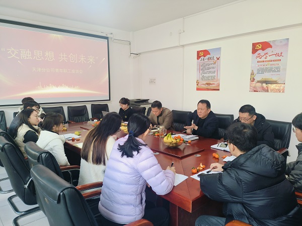 為進一步搭建青年職工與分公司領(lǐng)導(dǎo)間交流與分享的平臺,傾聽青年職工在工作、生活中的想法與困惑,激發(fā)他們的創(chuàng)新思維和工作熱情,促進青年職工與企業(yè)共同發(fā)展,2025年1月23日上午,天津分公司在會議室召開了以“交融思想,共創(chuàng)未來”為主題的青年職工座談會。經(jīng)理李廣濤、黨支部書記臧聯(lián)合、主任經(jīng)濟師張新廣以及9名青年職工齊聚一堂,圍繞職業(yè)發(fā)展、工作感悟等話題展開深入交流。